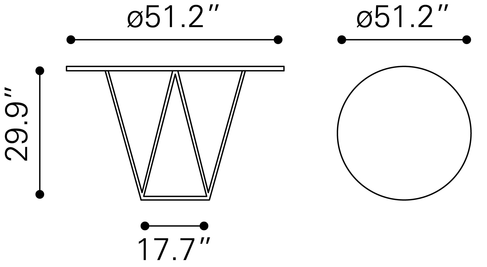 Tamaño: 51.2" W x 51.2" D x 29.9" H