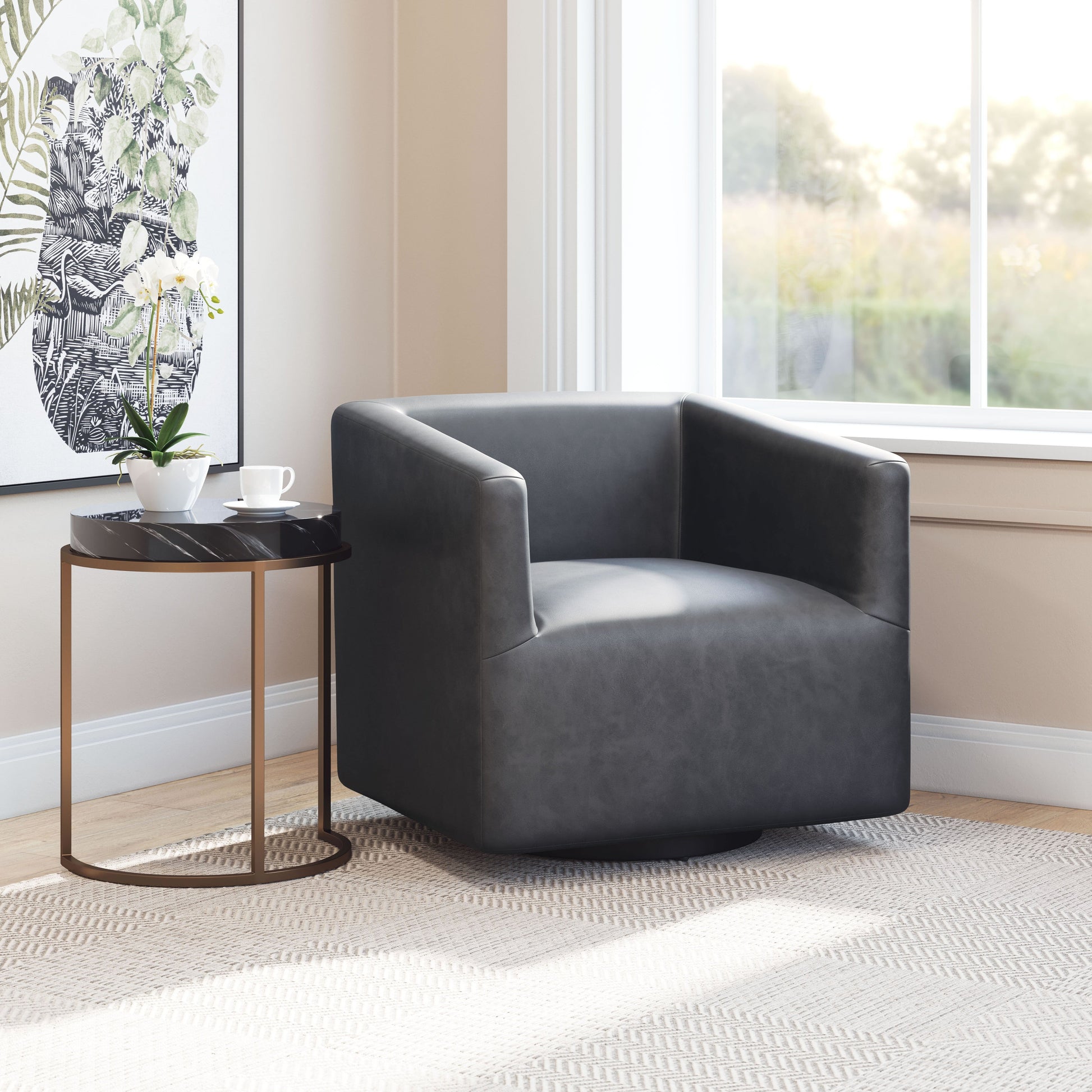 Faux Leather 100% Polyurethane, Plywood, Painted Steel
