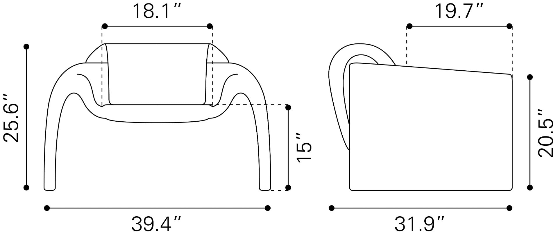 Tamaño: 39.4" W x 31.9" D x 25.6" H