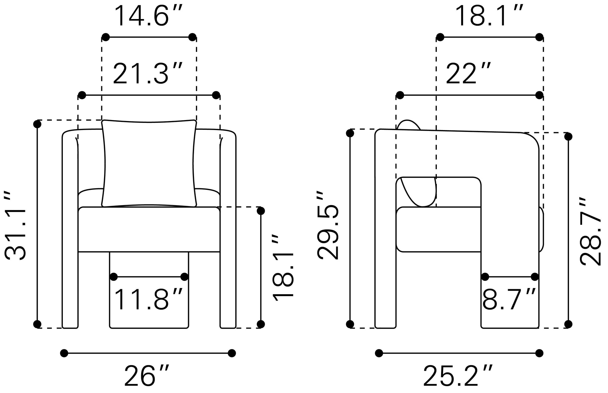 Tamaño: 26" W x 25.2" D x 31.1" H