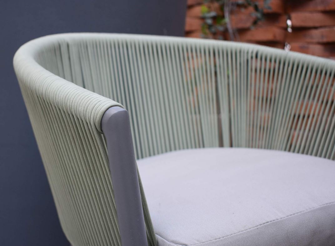 Cada pieza de esta colección está fabricada con materiales de alta calidad, principalmente aluminio, lo que los convierte en muebles duraderos y ligeros ideales para cualquier espacio.