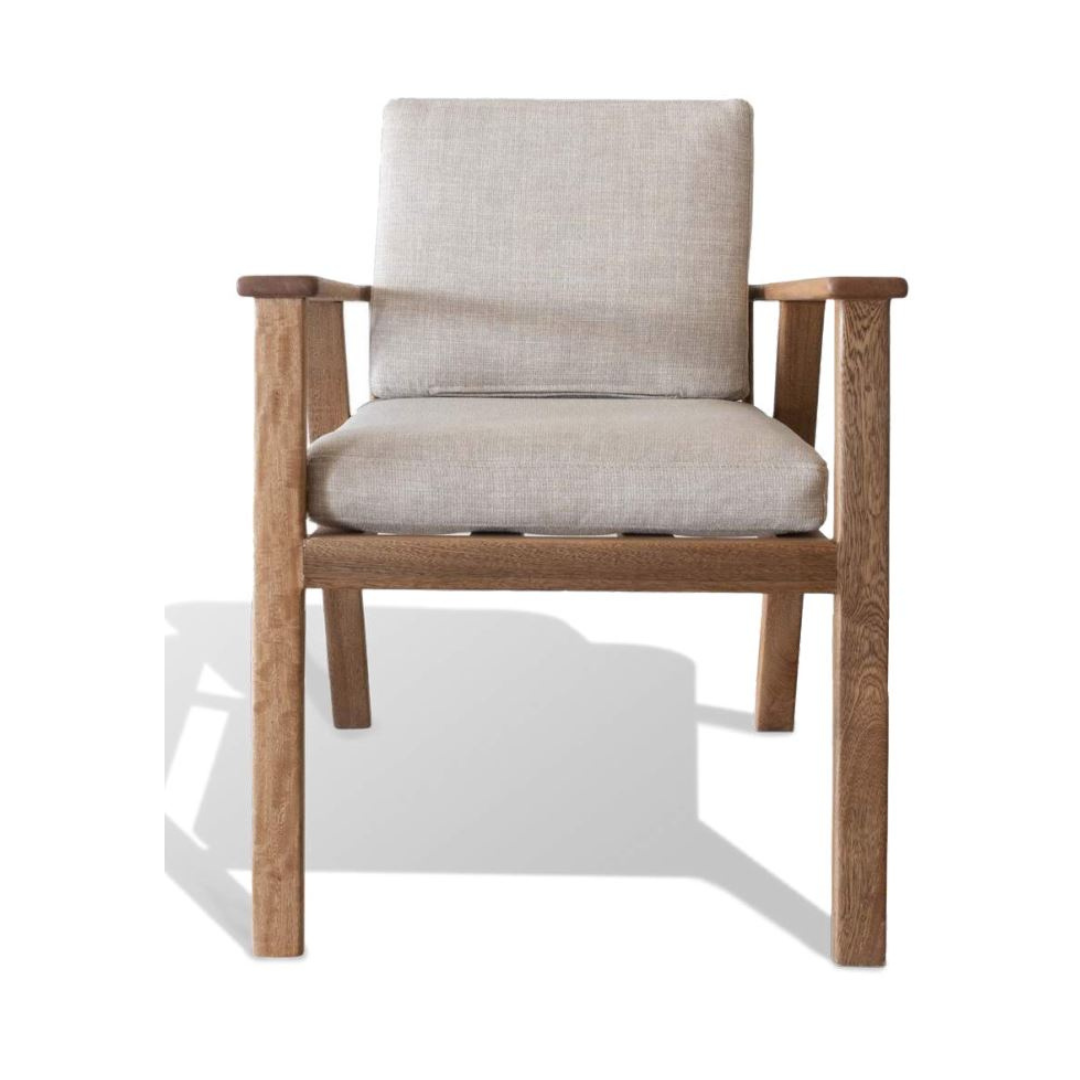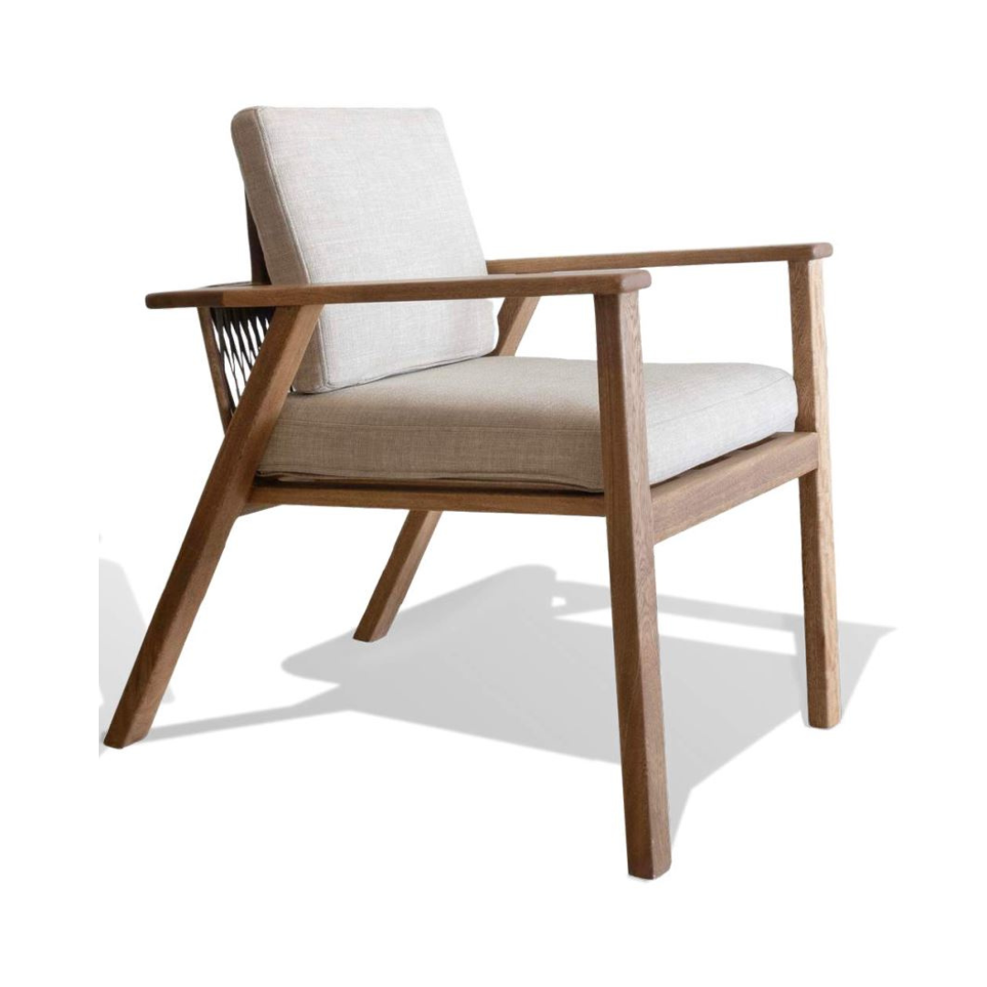 Silla de madera Rosa Morada con asiento y respaldo de tela beige