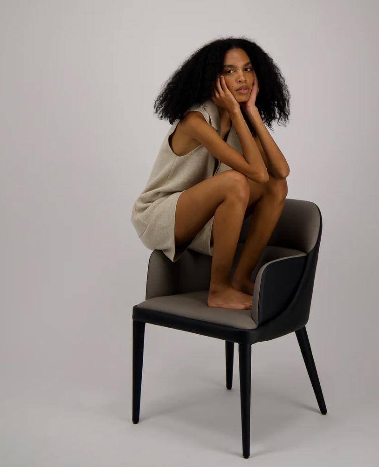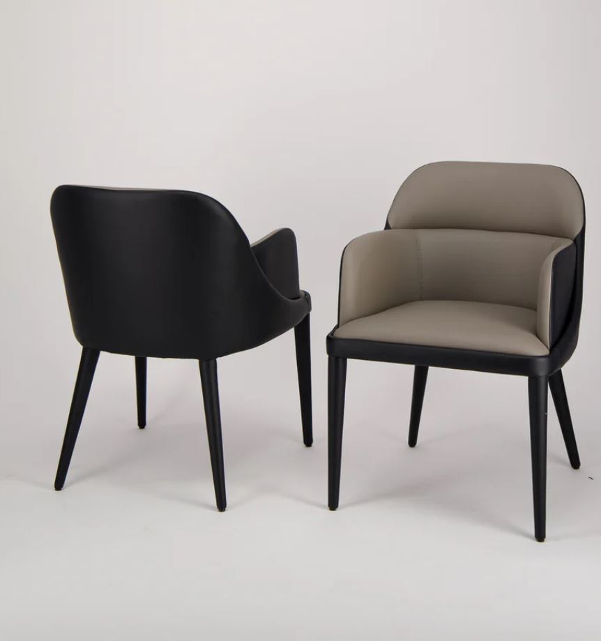 Silla Piel Beige Y Negra con patas color negro