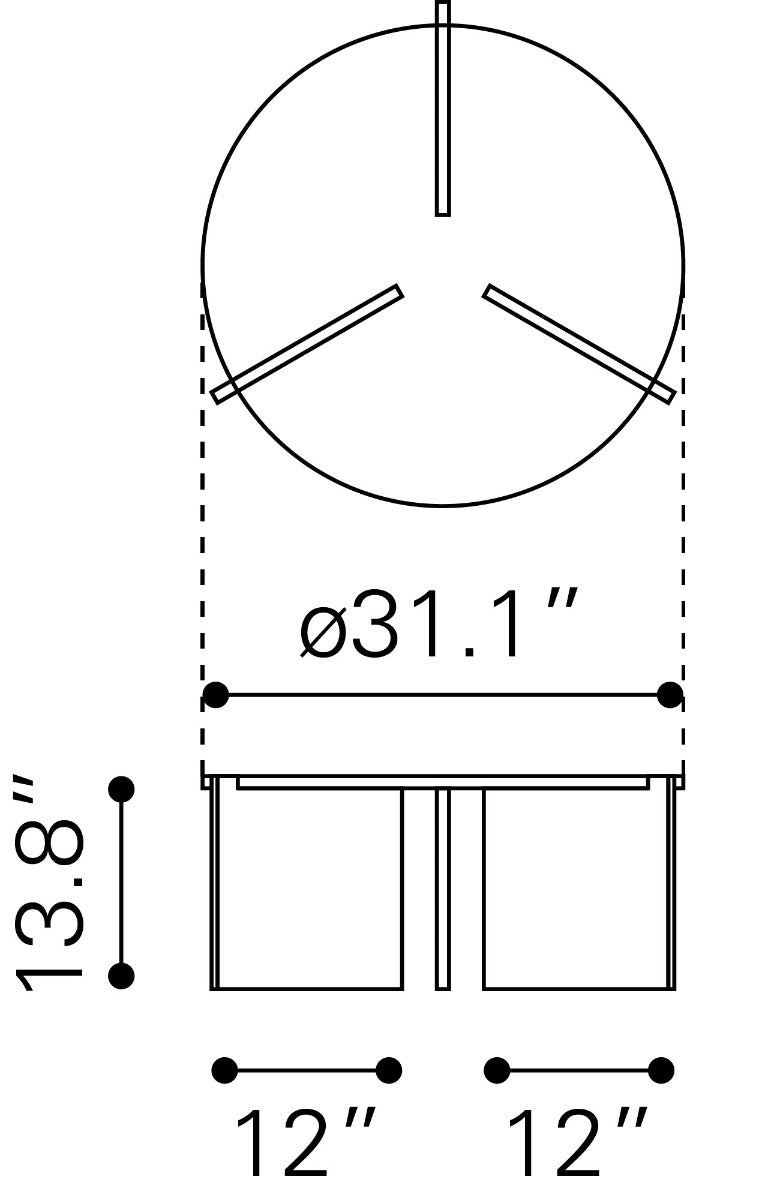 Tamaño: 32.7" W x 32.7" D x 13.8" H