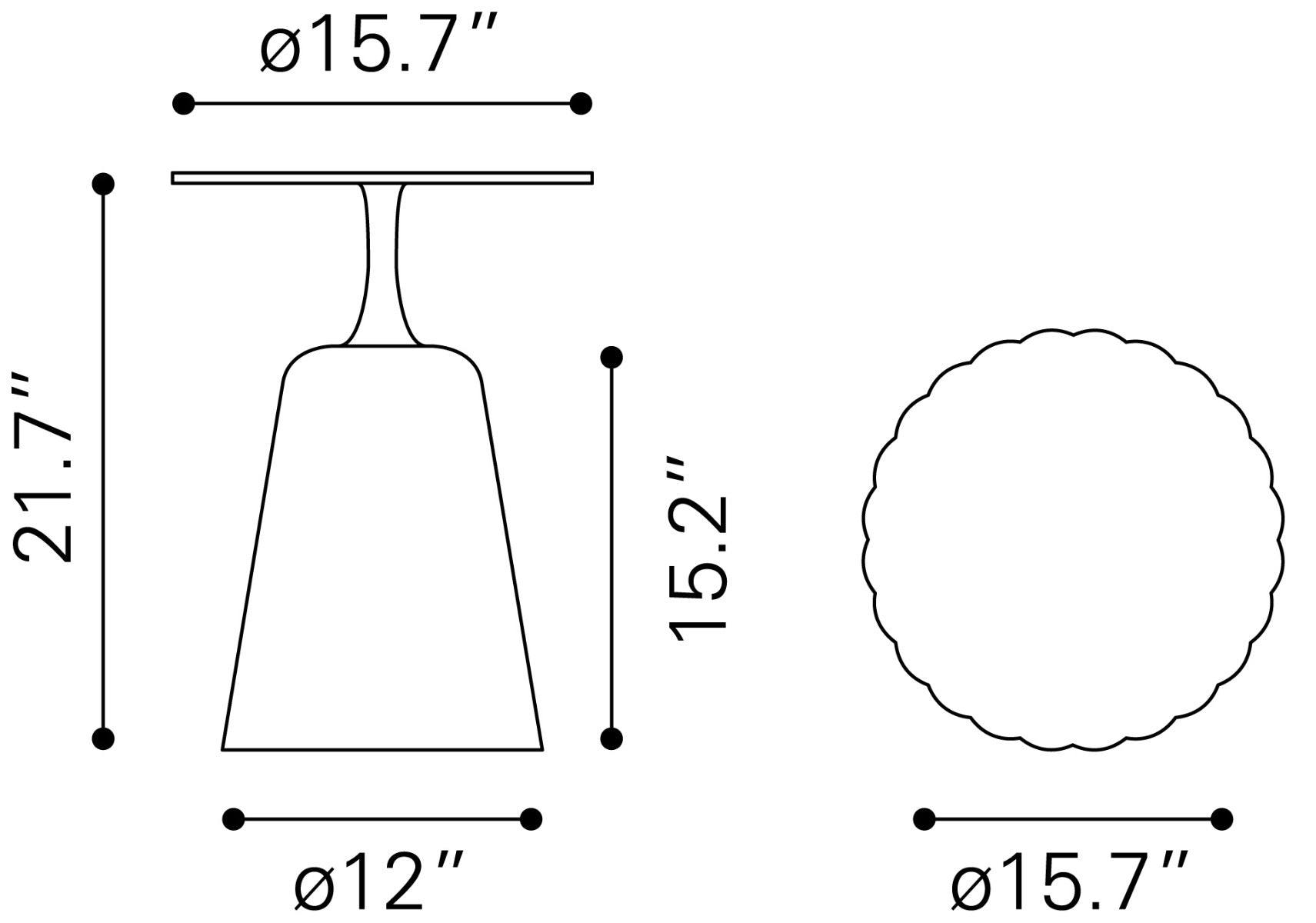 Tamaño: 15.7" W x 15.7" D x 21.7" H